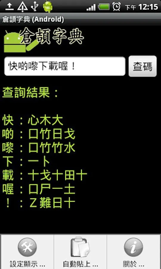 2. The collection of more than 22,000 Chinese characters and punctuation Cangjie code;