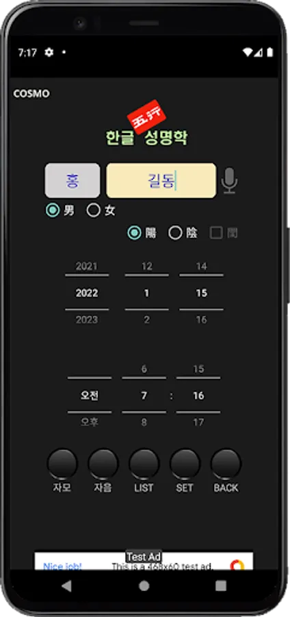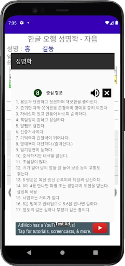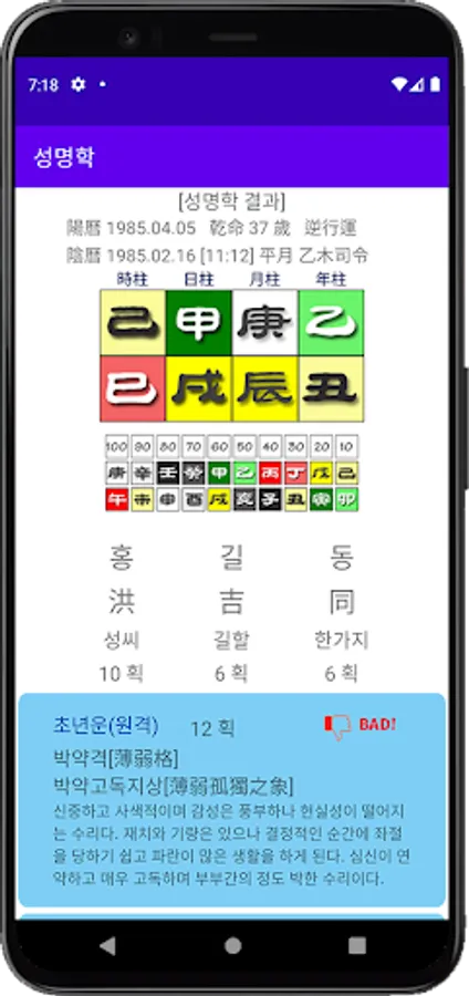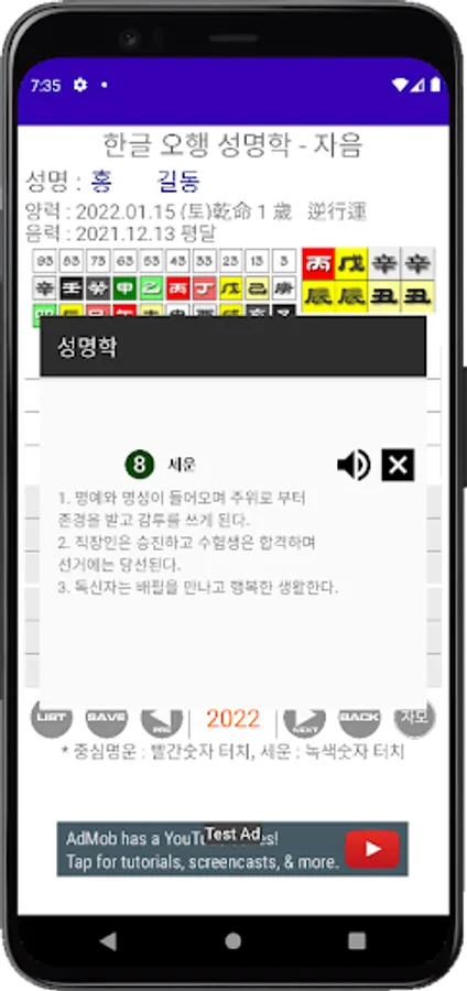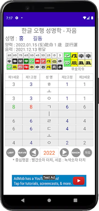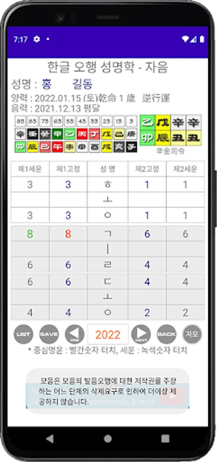 한글 발음오행으로 중심명운과 세운을 보여주는 어플이며