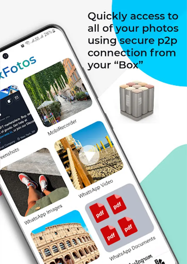 FxFotos is a gallery app that gives you full control of your media and files. You keep your images and videos on your "Blox", which is a decentralized node you own, and you can browse them through the app, giving you the same experience of smoothness as Google Photos or Apple Photos. Fx Fotos is a free application, however, if you want to keep your photos on a decentralized Fula node instead of your phone, to keep them safe and accessible, you should purchase the hardware.