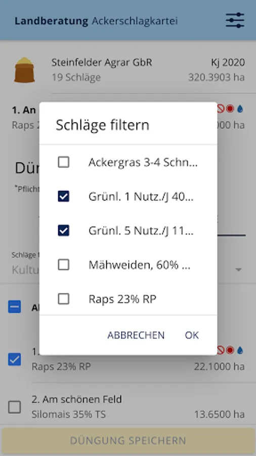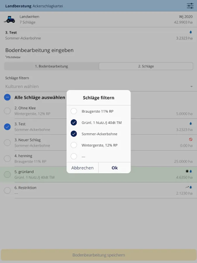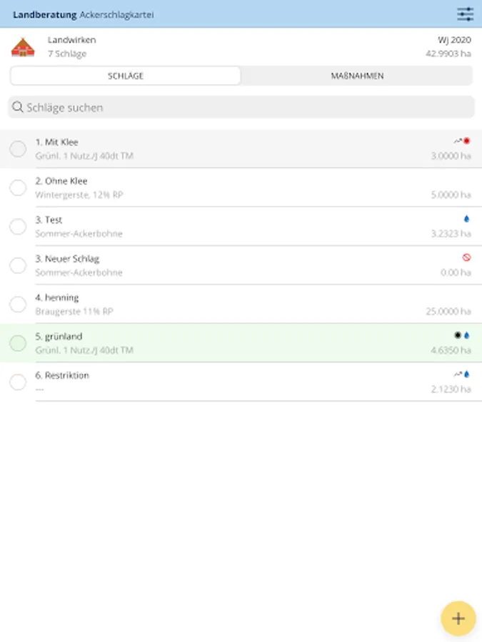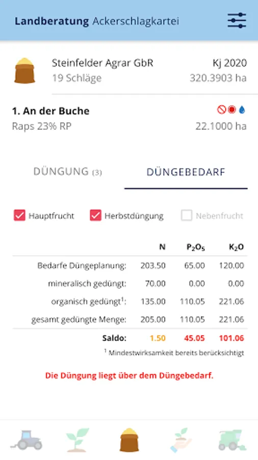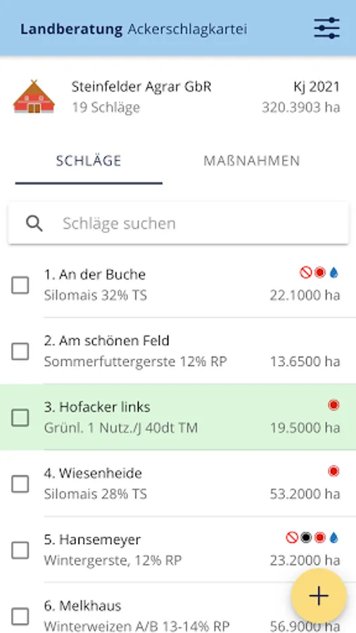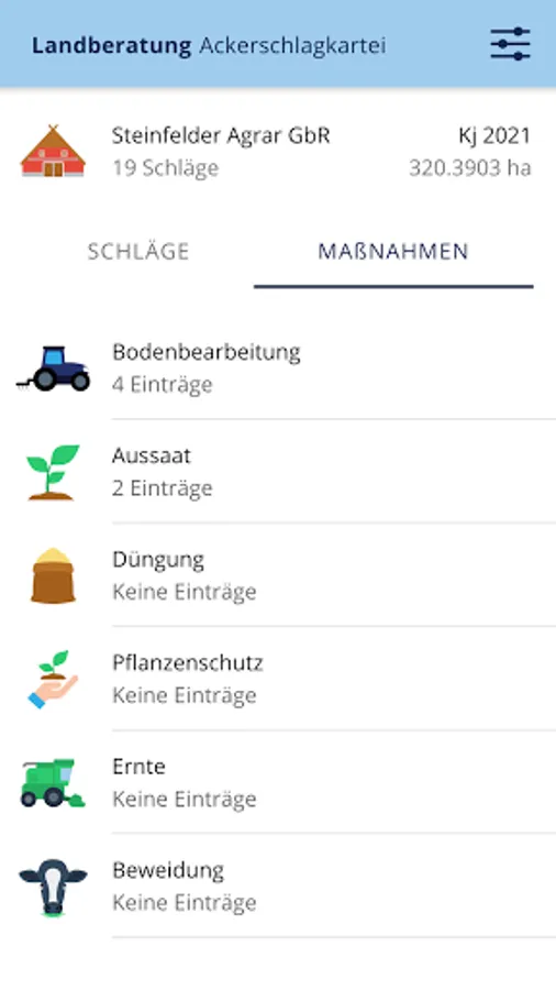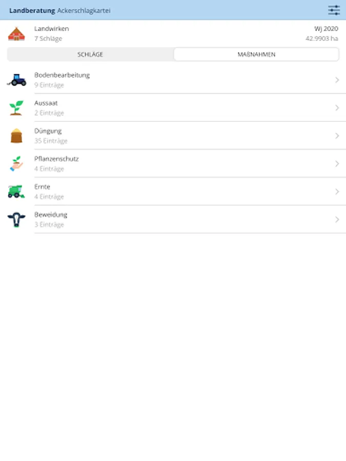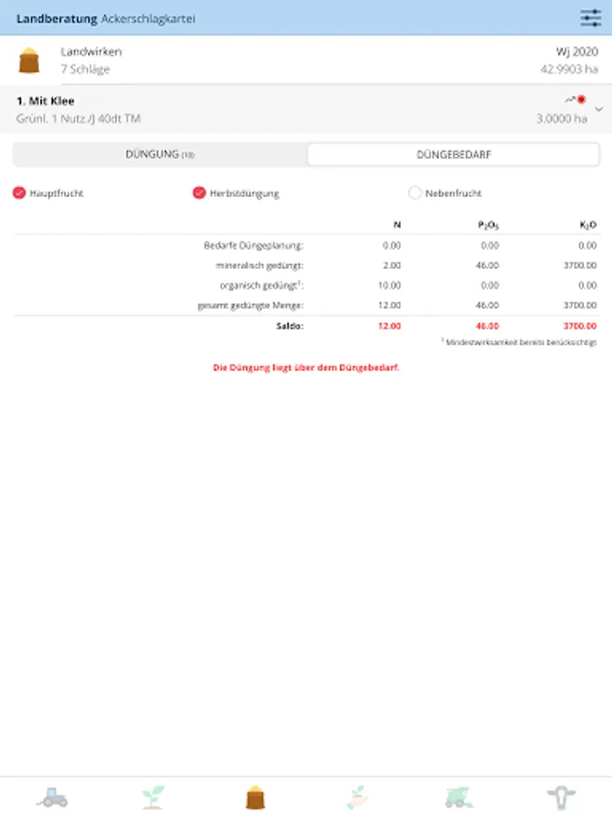 - Recording of field data, tillage, sowing, fertilization, pesticides, harvesting measures, grazing