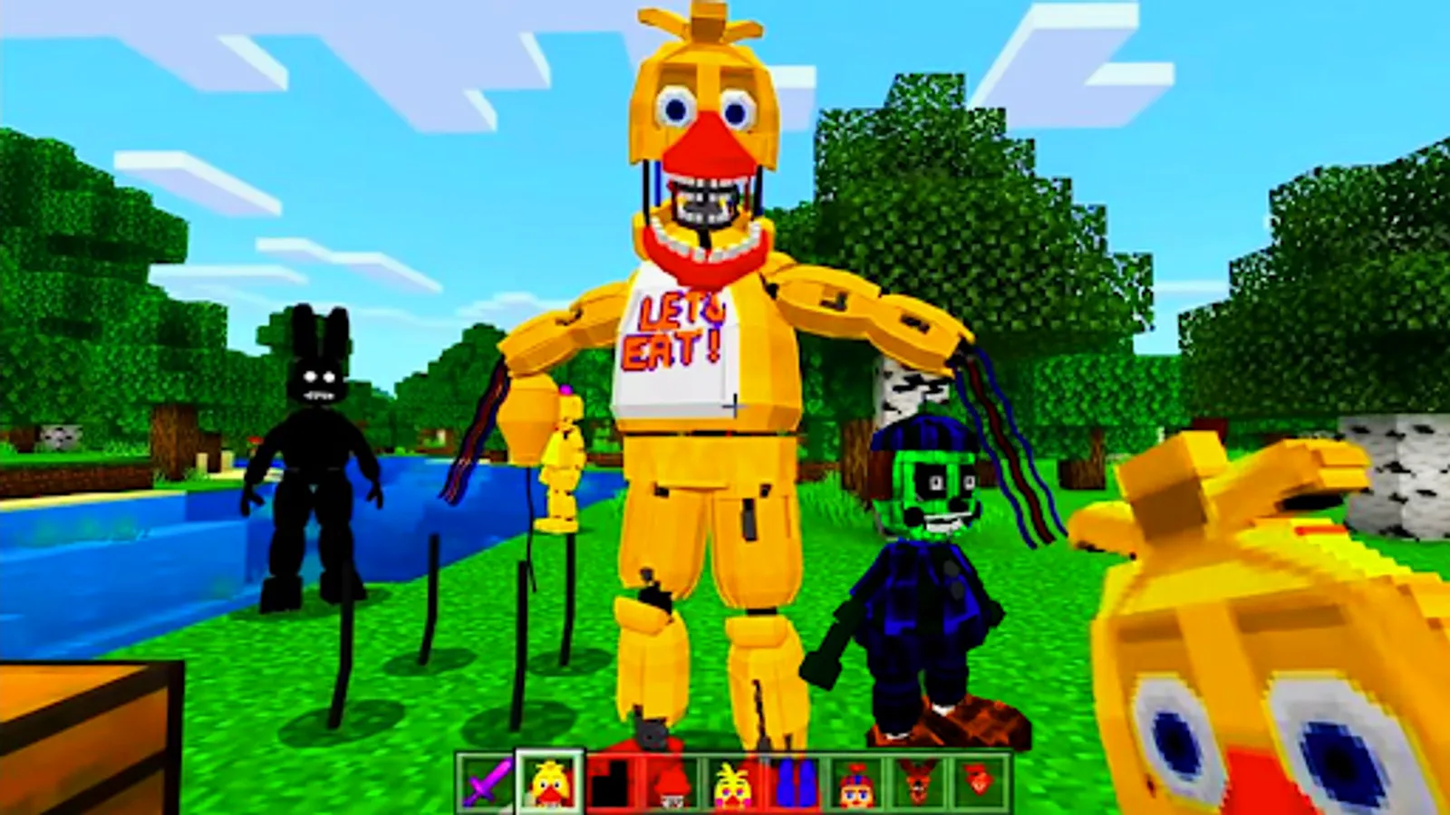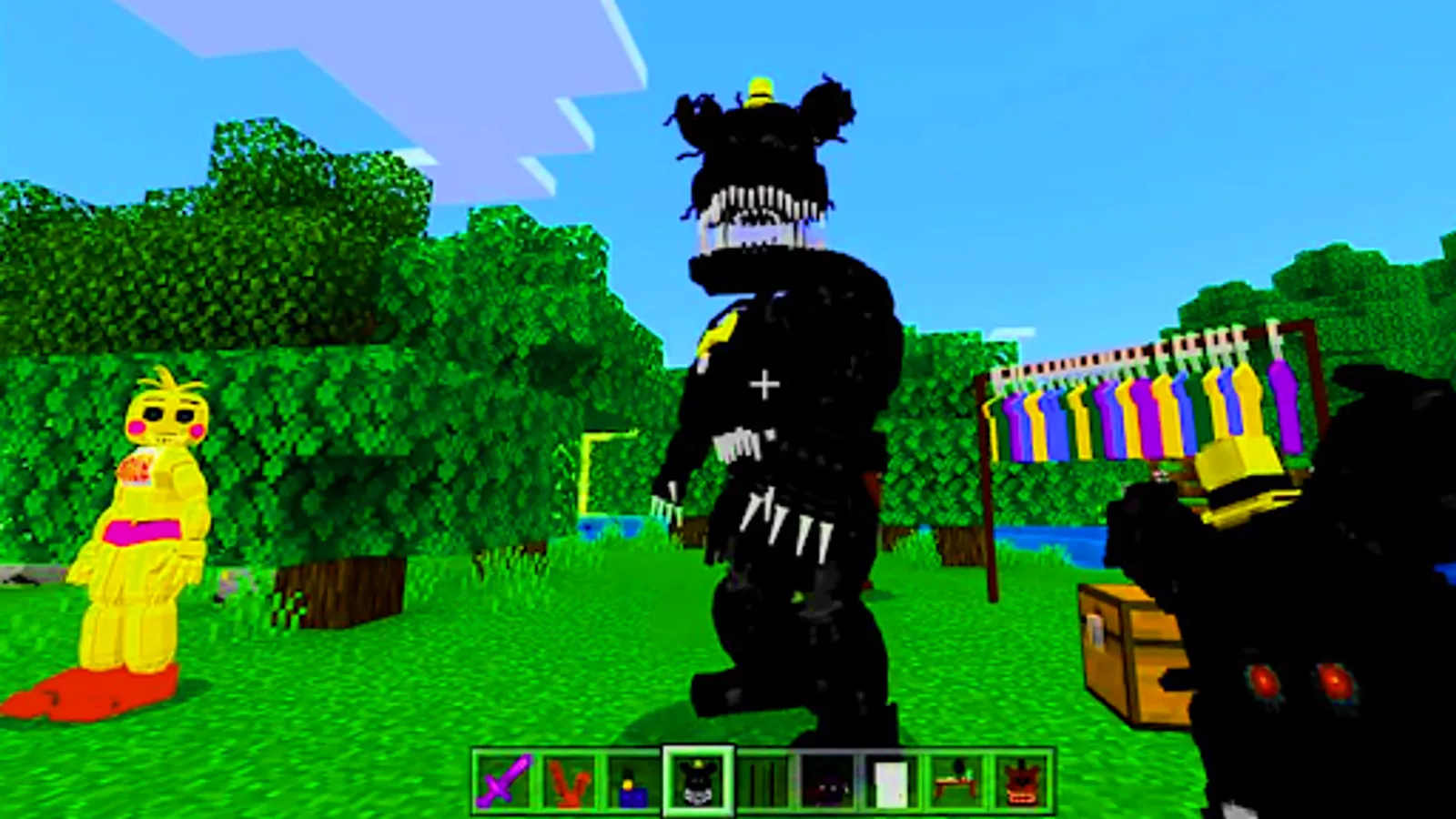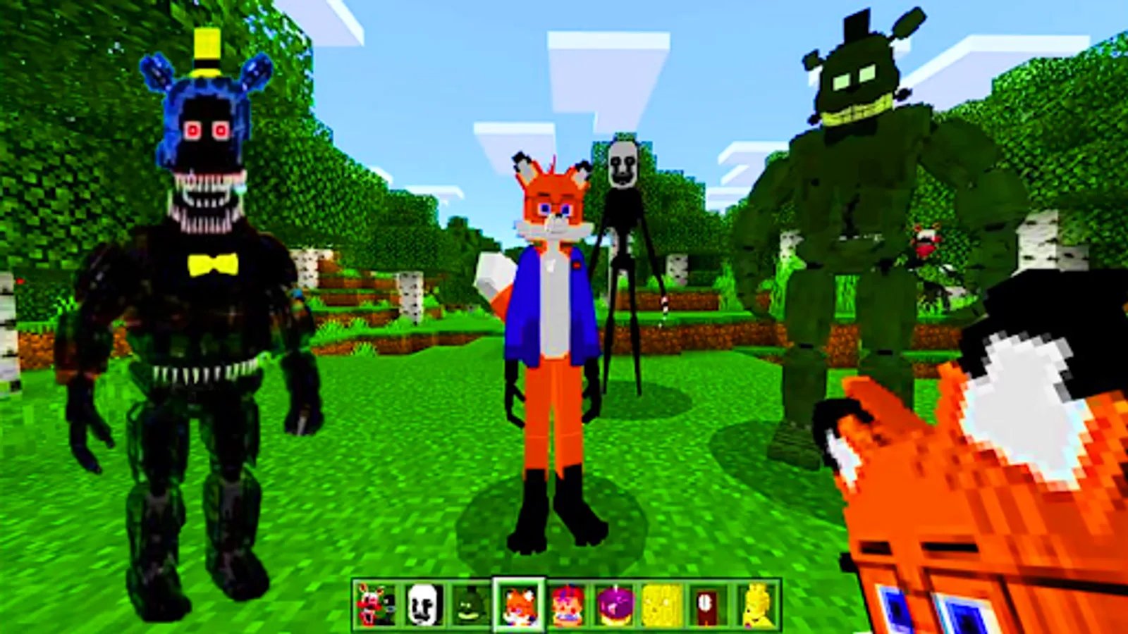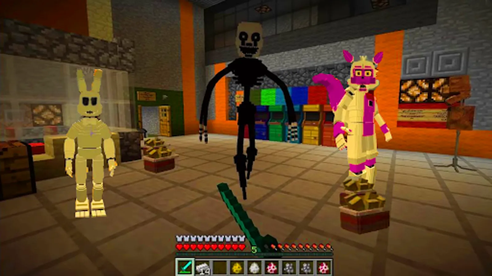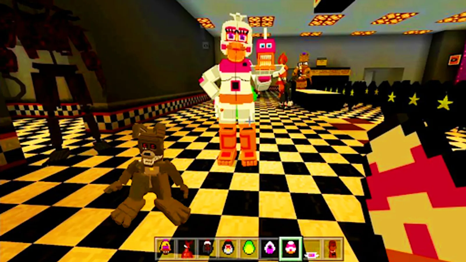 Many probably played the Freddy's Security Breach add-on, so the most terrible monsters from fnaf world in Minecraft PE were added to mod assembly. Not far behind in popularity and fnaf sister location. All timelines were changed with the release of each story game, which revealed additional, previously unknown information. Historically, there have been 4 most unified and complete storylines: from FNaF to FNaF2, from FNaF3 to FNaF4, from SL to UCN and from HW to FNaF: Security Breach, which many fans still try to combine into one. The assembly includes the most popular, interesting and creepiest monsters of fnaf9 world.
