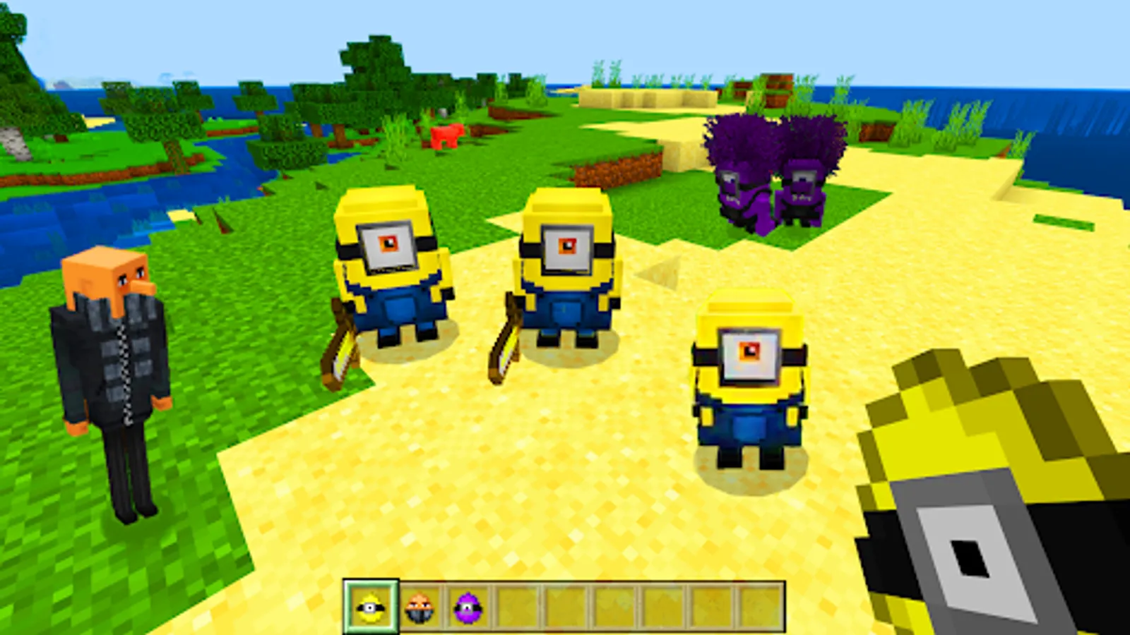 Do you want an easy, colorful and very funny minon ruch adventure in mcpe? If you like the Despicable Me cartoon or if your minecraft world simply lacks helpers, then this mod is definitely for you! This is a minion paradise in minecraft! Good and evil minons will be added to the game, as well as the supervillain Gru.