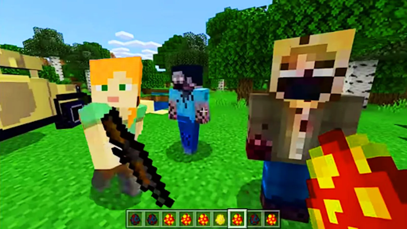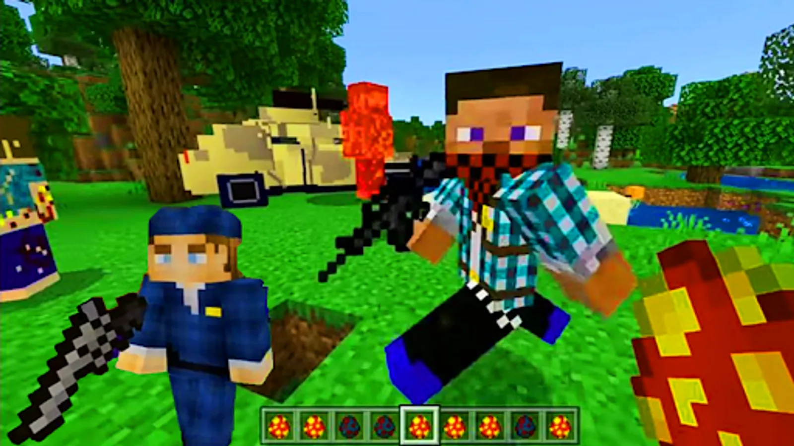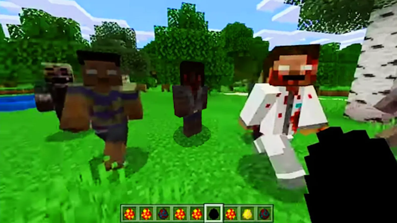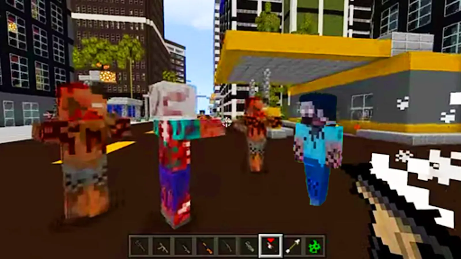 Getting into the zone of visibility of a zombe, he will begin to chase you, so hordes of zombi pixel will soon begin to hunt for the minecraft player. Every 24 in-game days, zombi 2 will mutate, increasing their attack and health characteristics, the maximum mutation level is 5. A variety of weapons and ways to destroy zombs will be available to you. Use guns, machine guns, pistols, bats, knives, crush them with cars and tanks, launch them from a catapult and much more.