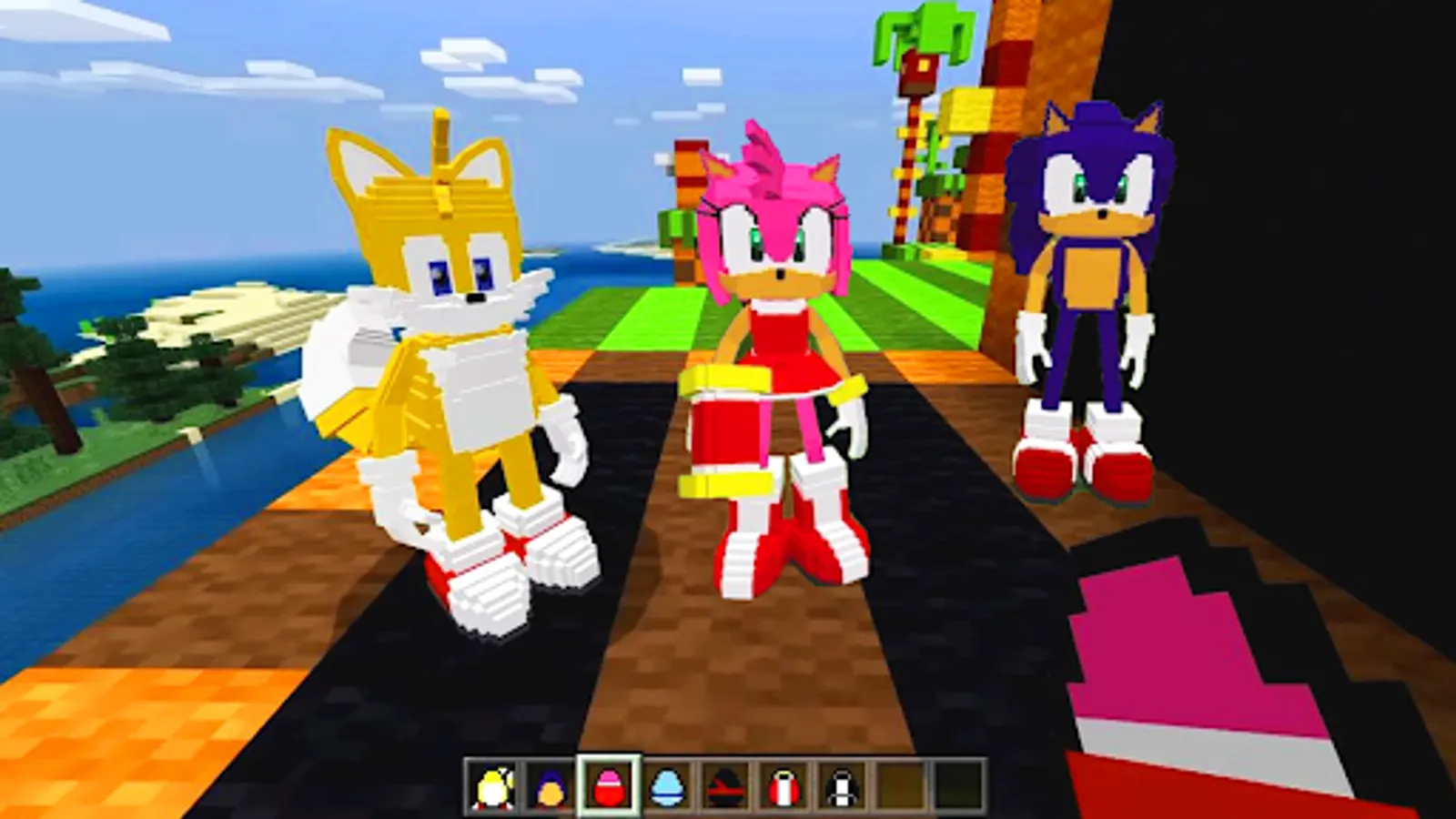 To the delight of fans of the legendary Sonic the Hedgehog video race games from Sega and the comics, animated series and films created on its basis! For all the many fans of the hedgehog Sonic2! Did you know that over time, this story was supplemented by other bright characters besides him, Tails and Amy Rose. If you want to know the continuation of this story and get to know all the heroes of Sonik the Hedgehog, install the Sonic 2 addon pe and take part in an new fun run along with your favorite and new heroes.