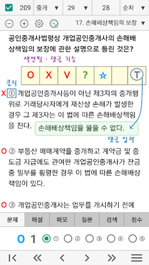 ③ Main functions: Solve in order of contents, solve in sequential order, solve randomly, solve only wrong questions, solve only checked questions, score statistics, font size setting, window size adjustment, colored pencil function, memo function, timer function, etc.