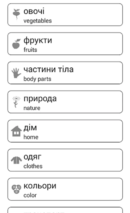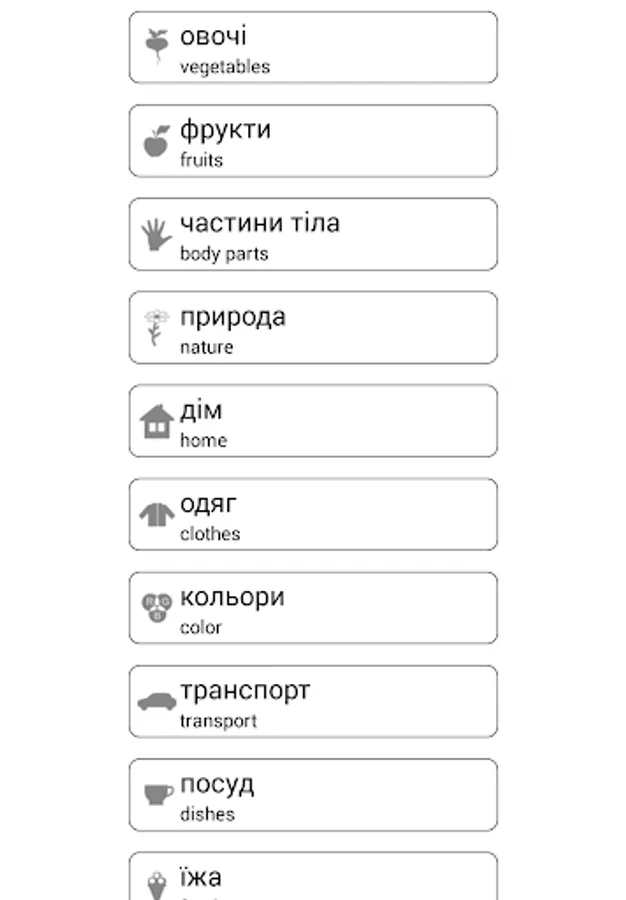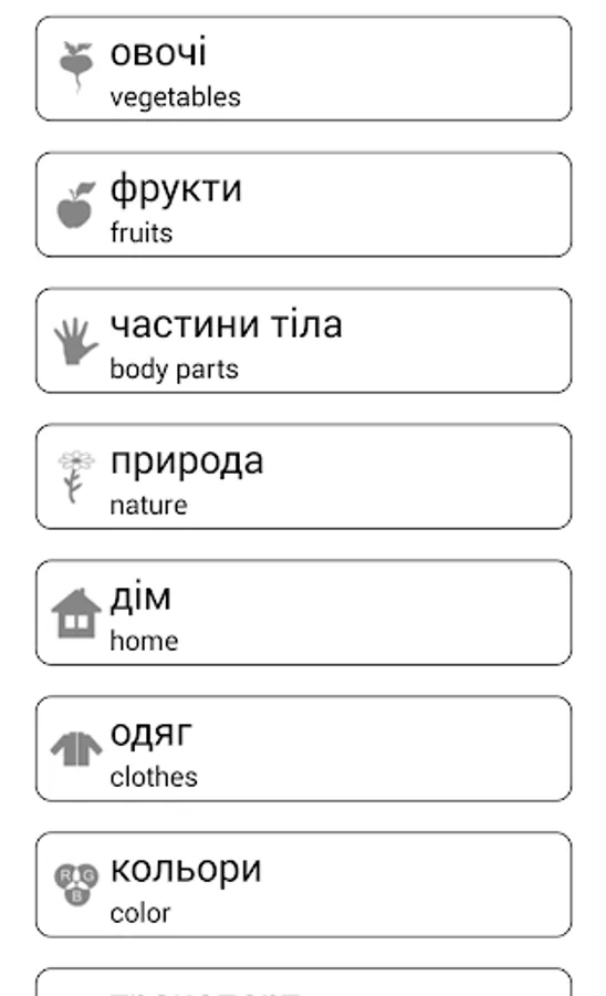 This is practically an illustrated dictionary and exercises for learning Ukrainian that helps beginners and children to learn Ukrainian words through playing.