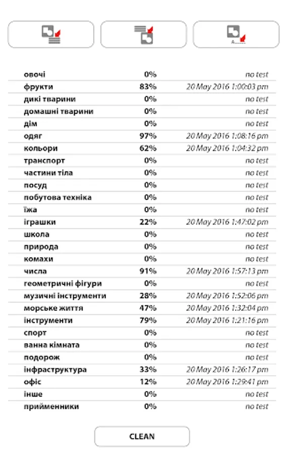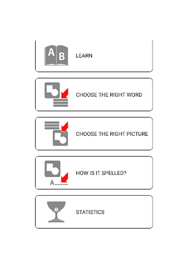 • Language quiz – testing of the knowledge of the words happens through fun and simple games: