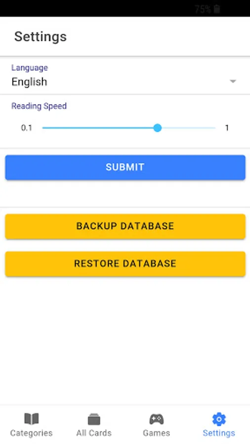 Language flash cards is a vocabulary app. It is designed to help you memorize words efficiently and improve your vocabulary.