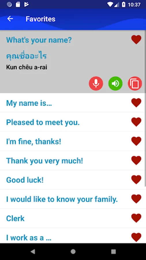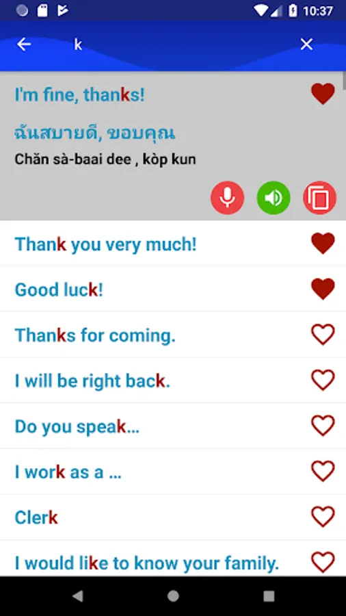 This application is developed by Thai language experts, including over 6000+ Common words and phrases with 64 categories. Perfect search and manage your favourite items system.