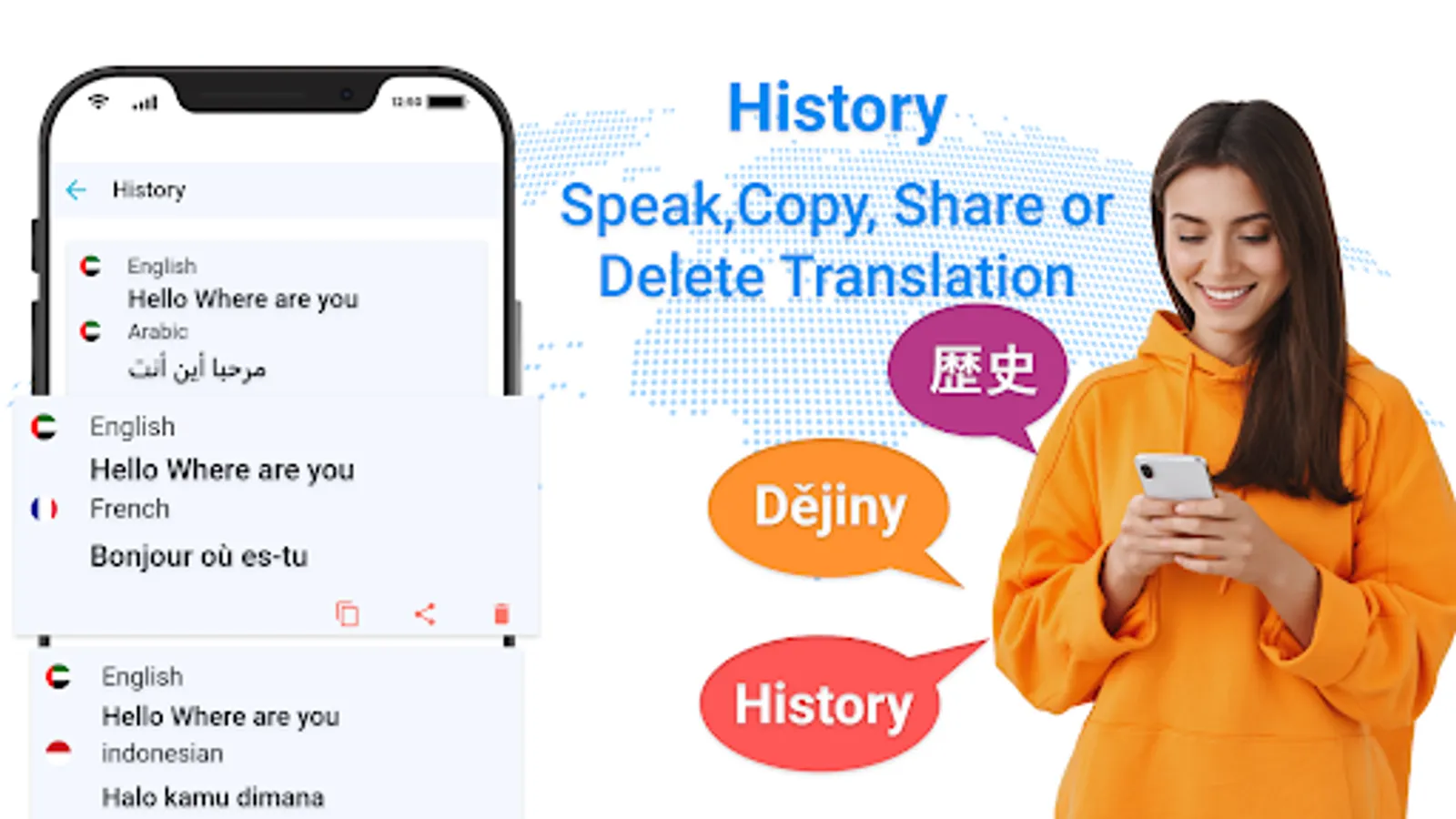 History feature is given so now user can find out easily their last conversation and text translate. This is ease to the user that where the user has to leave progress from.