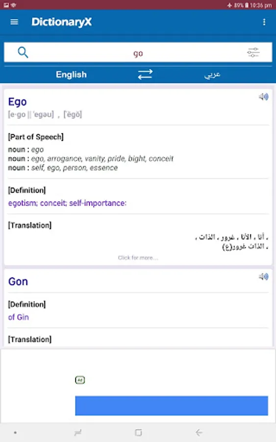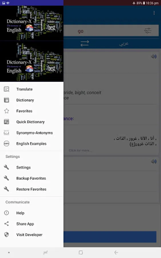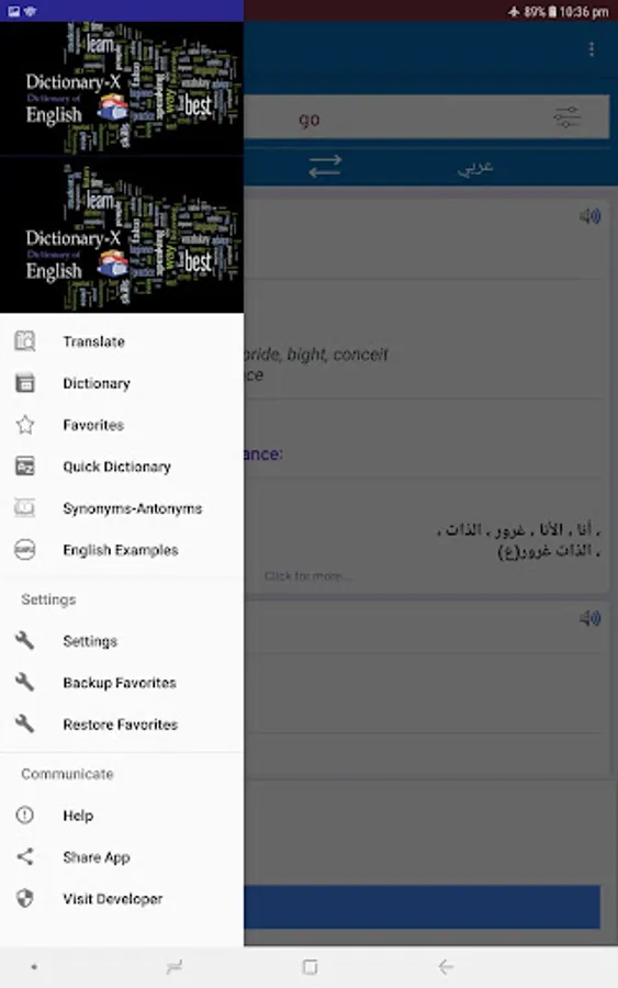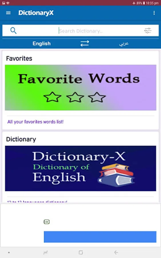 Dictionary X is now support translation to 13 different languages (English,French,Arabic,Spanish,Germany,Russian,Portuguese,Turkish,Indonesian,Hindi,Korean and Japanese)