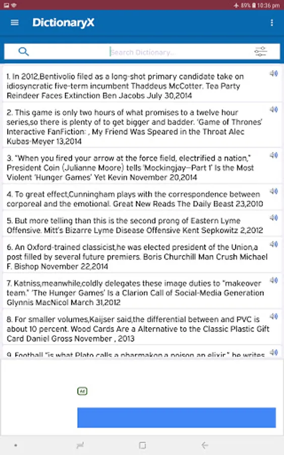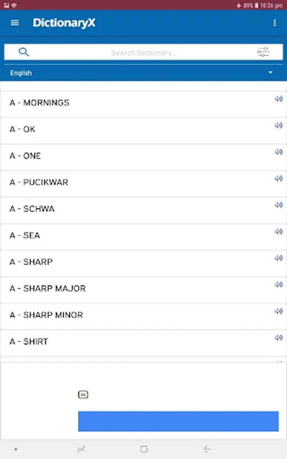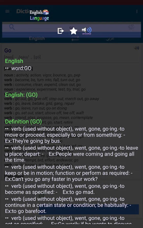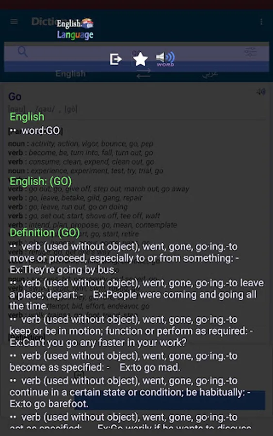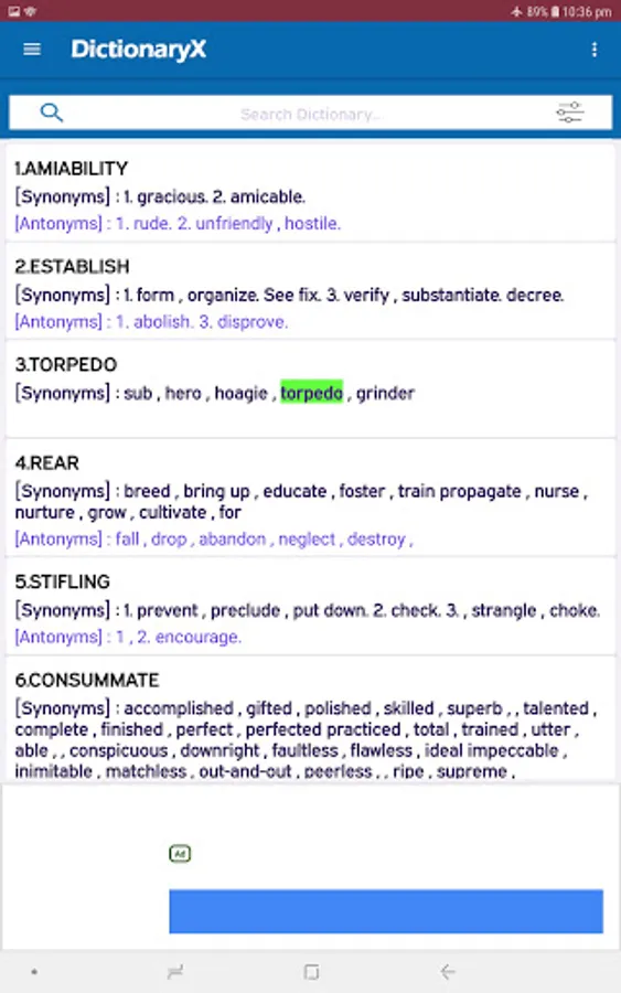 DictionaryX is a Complete offline English dictionary which contains more than 200 thousands words with its synonyms,antonyms,guide words,examples and similarities.