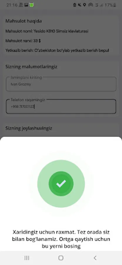 barchasi O'zbekiston bo'ylab bepul yetkazib beriladi.