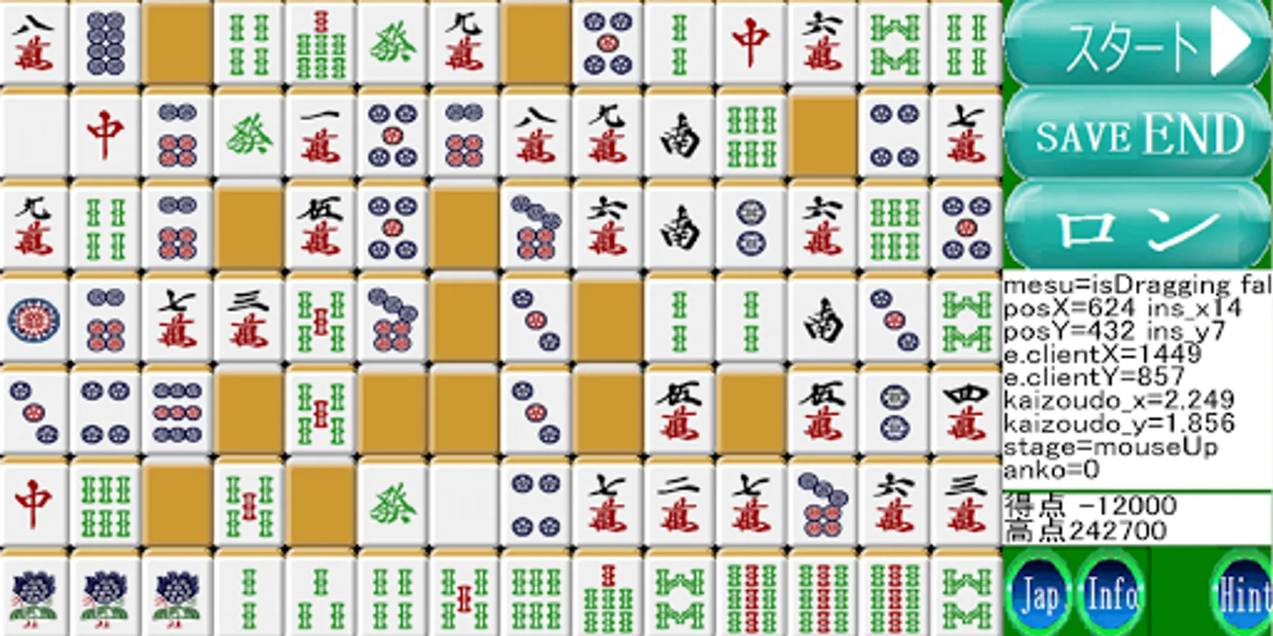 This game is a mah-jongg puzzle game. Please make a rise officers from among the loose tiles. Over the six columns, not to complete the role and do not take up. You go side-by-side down and drag-and-drop to select the required tiles. Please Touch operations on the tablet.