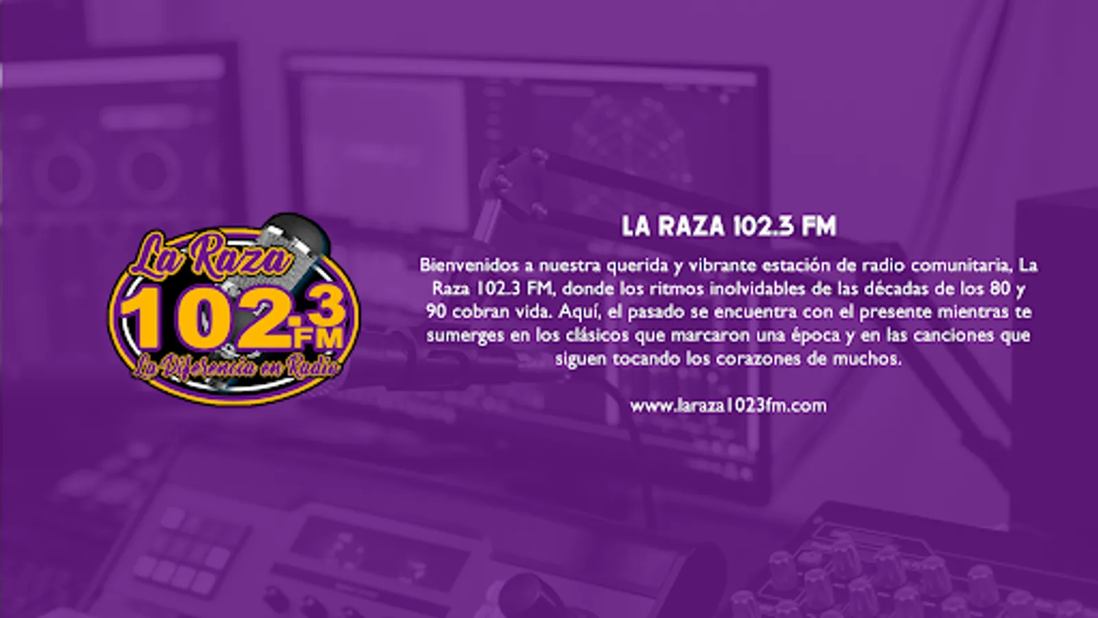 Welcome to our beloved and vibrant community radio station, La Raza 102.3 FM, where the unforgettable rhythms of the '80s and '90s come to life. Here, the past meets the present as you dive into the classics that marked an era and the songs that continue to touch the hearts of many.