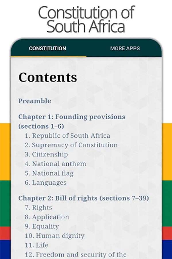 The constitution consists of a preamble, fourteen chapters containing 244 sections, and eight schedules. Each chapter deals with a specific topic; The schedules contain ancillary information referred to in the main text.