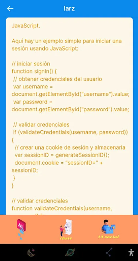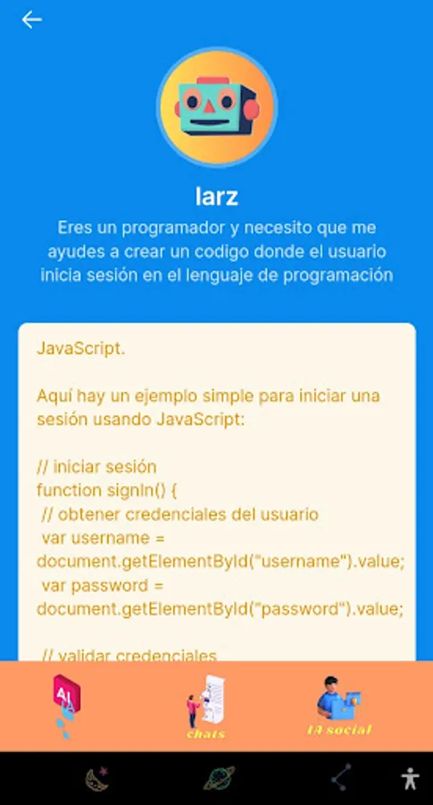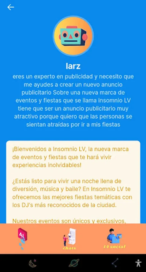 And not only that! LARZ IA is easy to use, intuitive and will always be available to answer all your questions. You can count on it at any time of the day and anywhere. With LARZ IA at your disposal, you can have access to incredible artificial intelligence that will solve your needs quickly and easily. Do you need help programming a website? Not sure how to prepare a delicious dinner? LARZ IA is the answer. With its easy use and intuitive interface, its PREMIUM version will even allow you to record your voice and convert it into text in a matter of seconds. You will no longer have to worry about spending hours typing or looking for information, because with LARZ IA you will have the solution to your doubts in an instant.