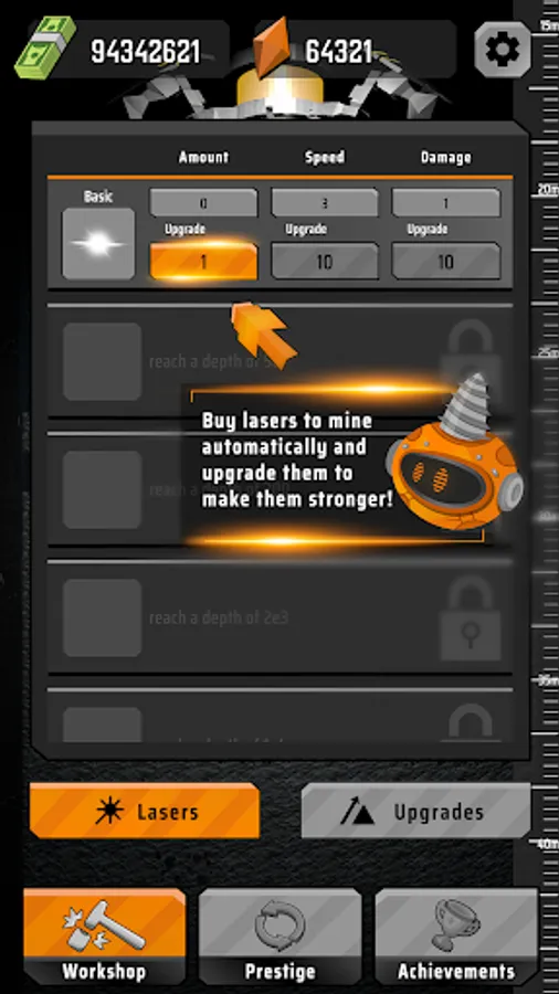 With your trusty laser drill at your fingertips, you can buy and upgrade it to make it even more powerful. As you dig deeper, you'll encounter new technologies that can help you to mine more efficiently and earn even more money.