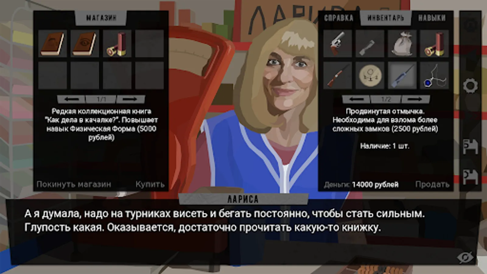 💥 you have to choose the vector of development of the main character, on which the further style of passing will directly depend. The game features three main skills: eloquence, fitness and perception.