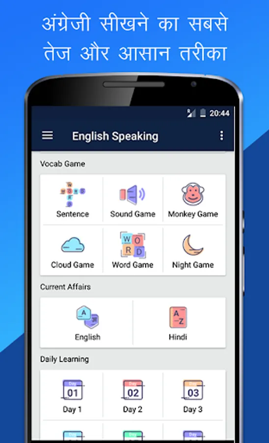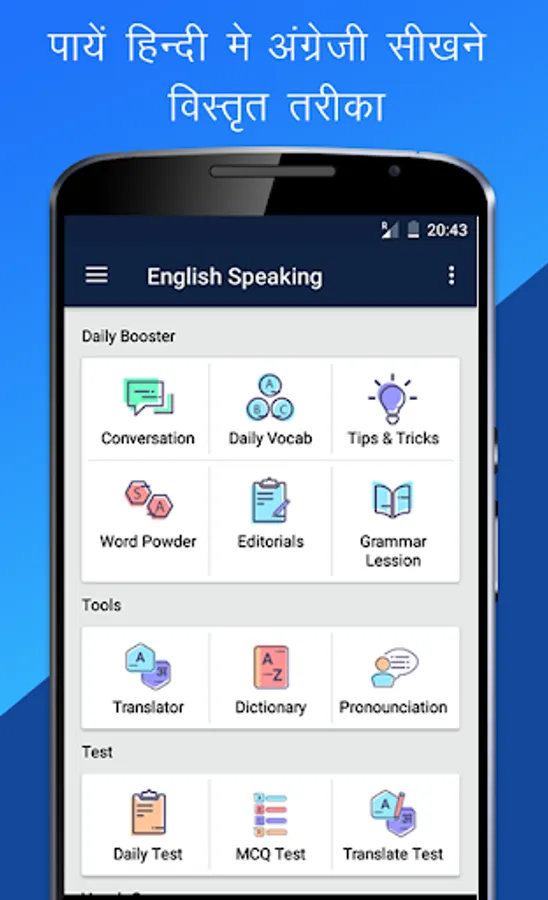 In today's competitive world, Spoken English is considered as a passport for success in life. The craze for learning spoken English has led to the growth of coaching institutes all over the country. App will help you to speak fluent English with correct pronunciation without joining any coaching institutes.