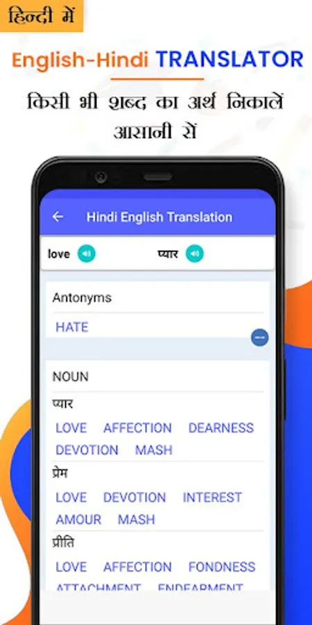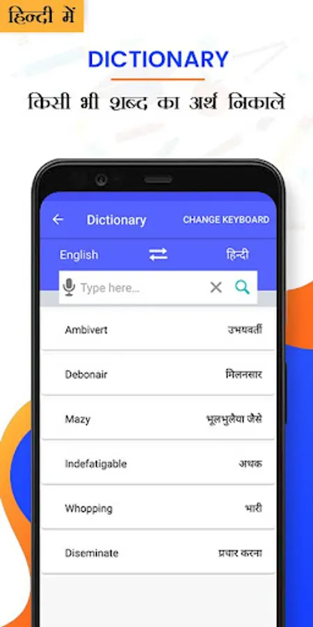 ★ Dictionary - Know meaning of any english words in hindi with speaker.