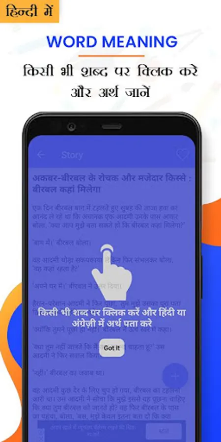 ★ Learn From Story - In this category we provide you story and best features is that you can know any words meaning in hindi or english.
