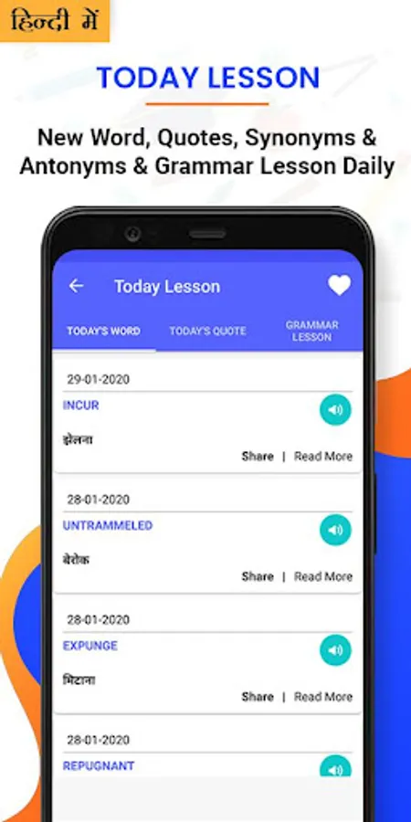 ★ Today Lesson - Daily Words , Quotes , Synonym & Antonym , Grammar Lesson with hindi meaning.