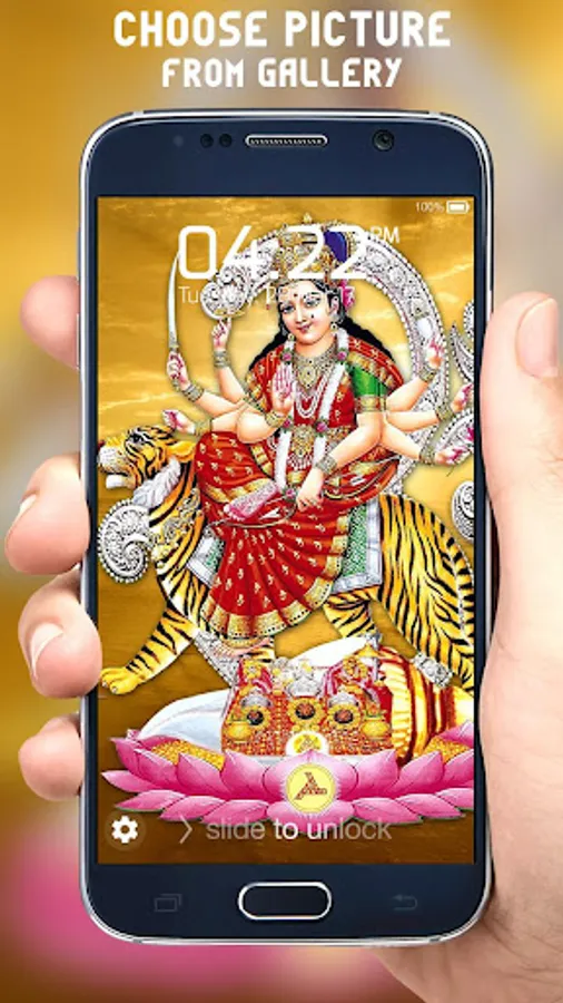 The Maa Durga Lock Screen app with the best sliding effect & High security lock screen with Passcode and Pattern style.