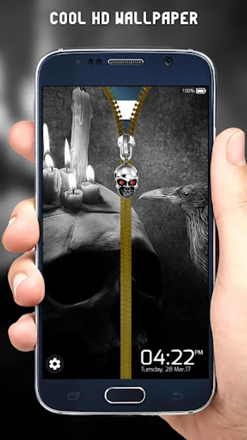 Skull Zipper Lock Screen help you to lock and unlock your phone screen by zip & passcode.