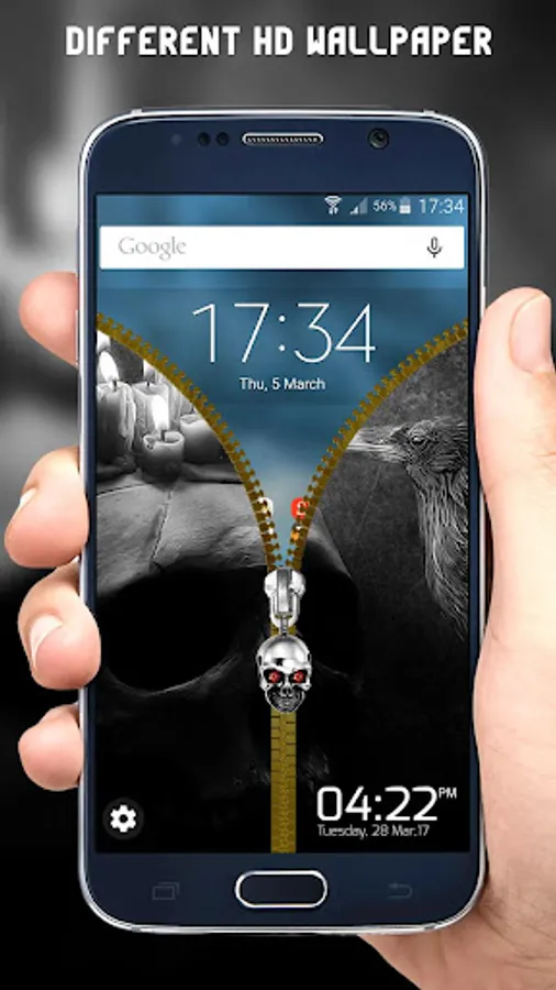 Skull Zipper Lock Screen is highly secure lock screen app in android.