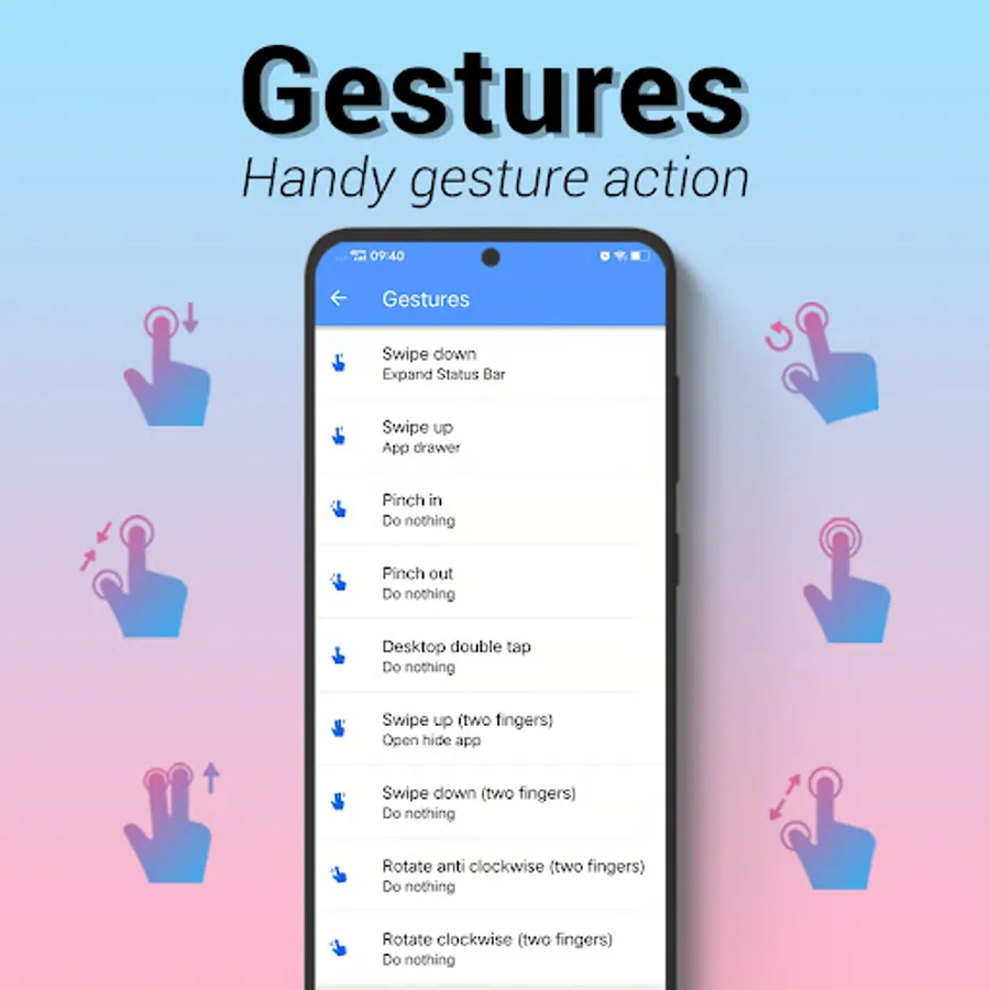 > MiX Launcher support gestures, such as swipe down/up, pinch in/out, double tap, two fingers swipe down/up
