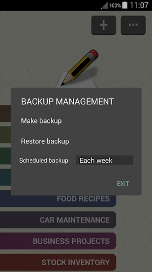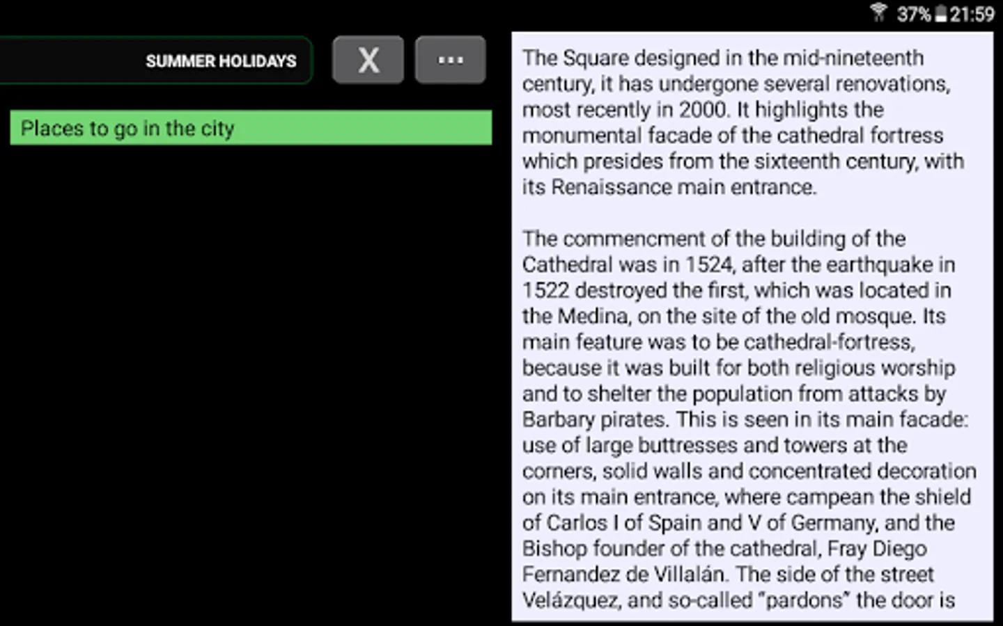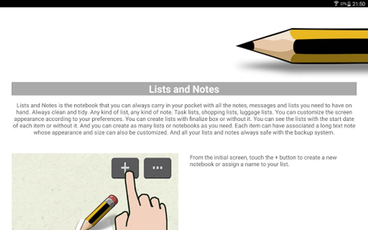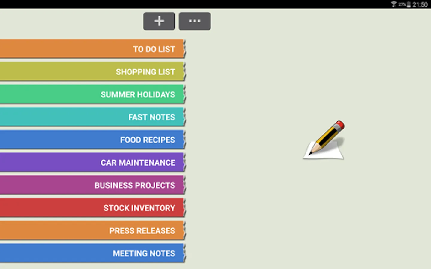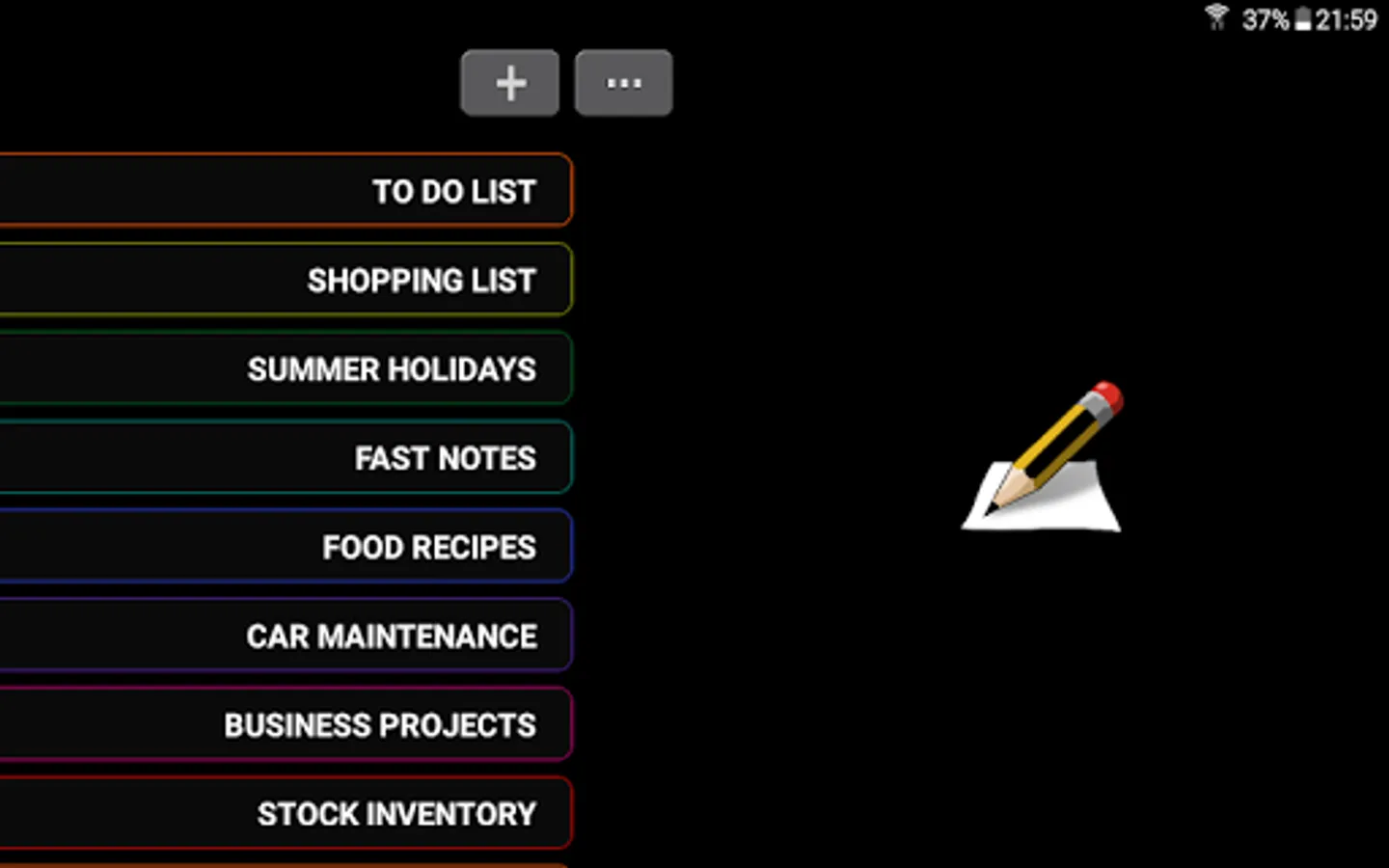 Each item can have associated a long text note whose appearance and size can also be customized.