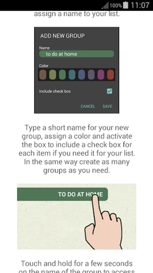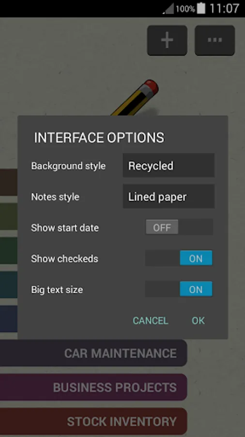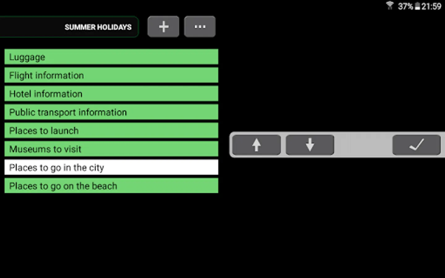 You can customize the screen appearance according to your preferences. You can create lists with finalize box or without it. You can see the lists with the start date of each item or without it. And you can create as many themes or groups of lists as you need.