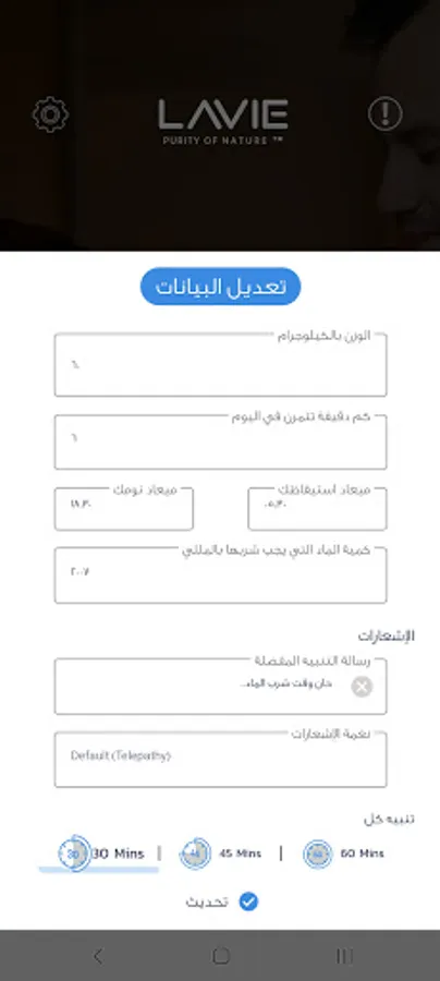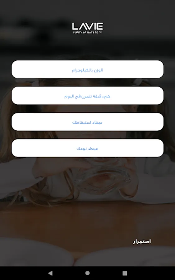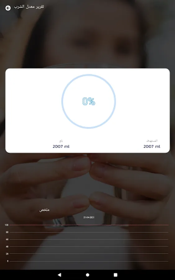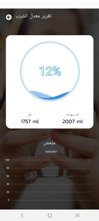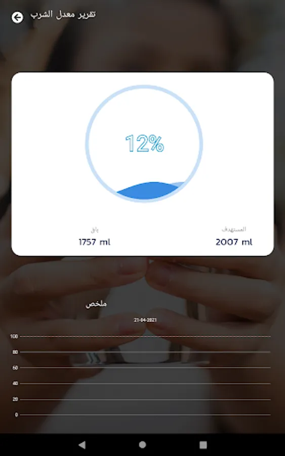 A water reminder app that helps you to keep your body hydrated by calculating your water daily need based on your weight and workout time. The app reminds you every time to take a cup of water to achieve your daily goal.