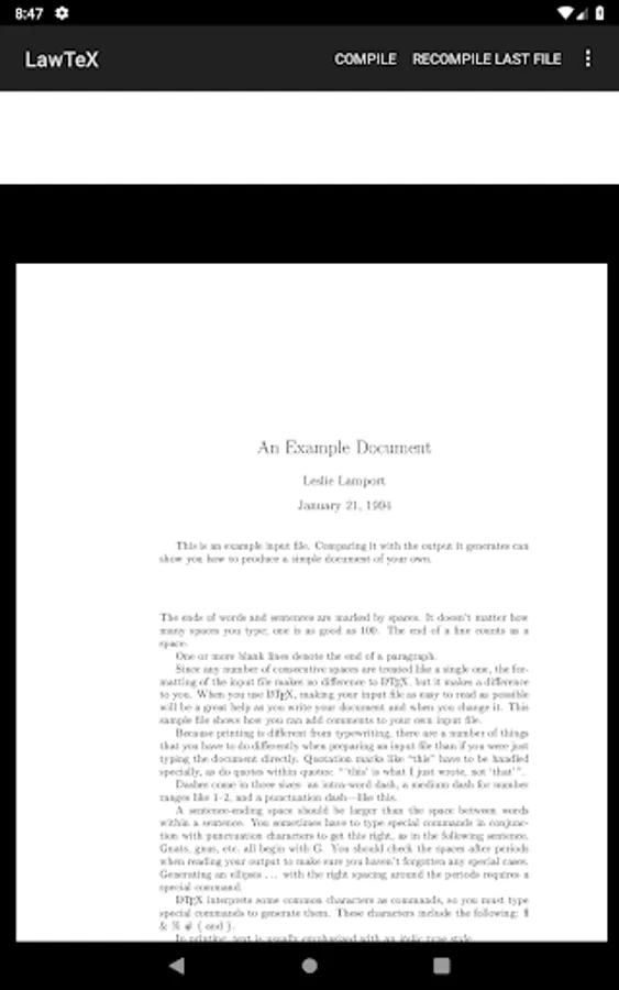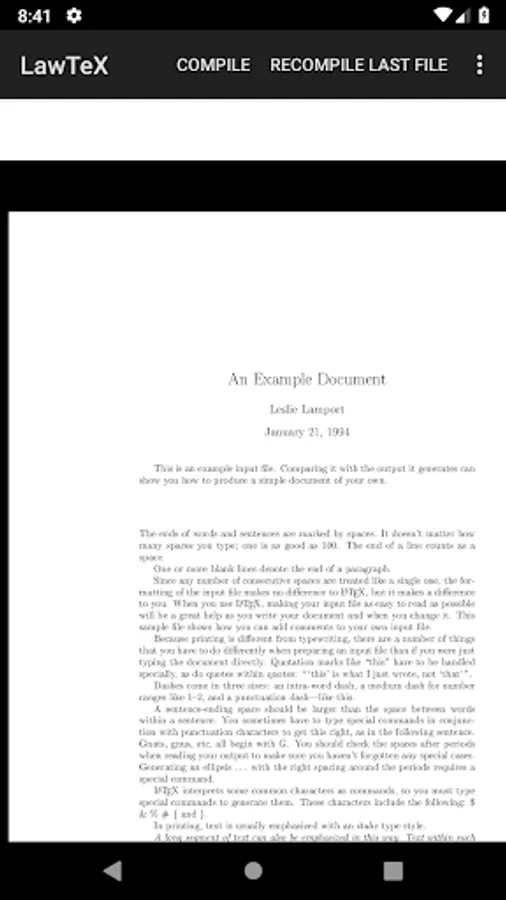 * with Light Tech's philosophy: The app ONLY aims for compiling and previewing LaTeX to assists you in modifying LaTeX sources, mostly for scientific (Maths, CS, ...) purposes, on Android phone. It doesn't aim to provide PDF or any kind of professional publishing. The only internal TeX engine we use is e-TeX, without Kpathsea, which only produces DVI output.