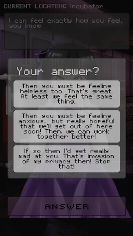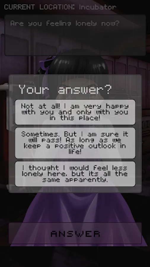 A camping trip to the woods led you trapped in an old, abandoned laboratory with a suspicious looking egg inside! Unlock the secrets of the Yandere girl's past, her creator, and help her find her future! Give her a name and help her see the goodness of the world outside!