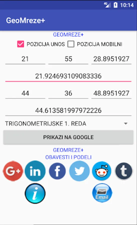 Clicking on the button Show on Google displays a Google substrate on which you will have to display your position (blue marker) and the closest position of selected types of dots (red marker).