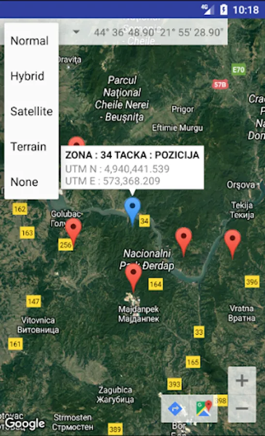 Clicking on the desired marker provides information on the point - position, its UTM coordinates and the coordinates of Latitude and Longitude in the format of degrees, minutes, seconds.