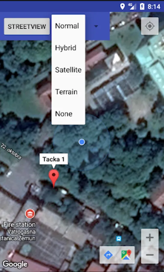 After entered the position you have the opportunity to select the types of points with a drop-down list that you want to display on Google substrates, or that are closest to your inputed or position occupied by your mobile device.