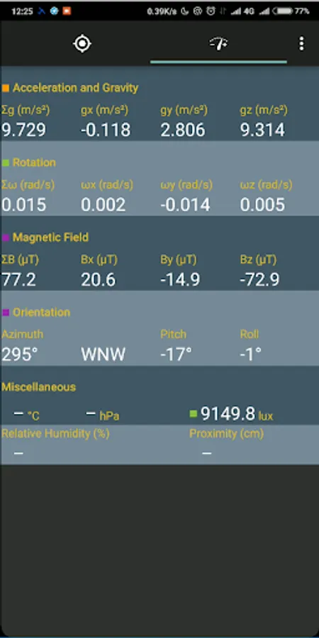 the mobile unit contains sensors: acceleration, magnetic field, brightness, temperature, humidity, gyroscope.