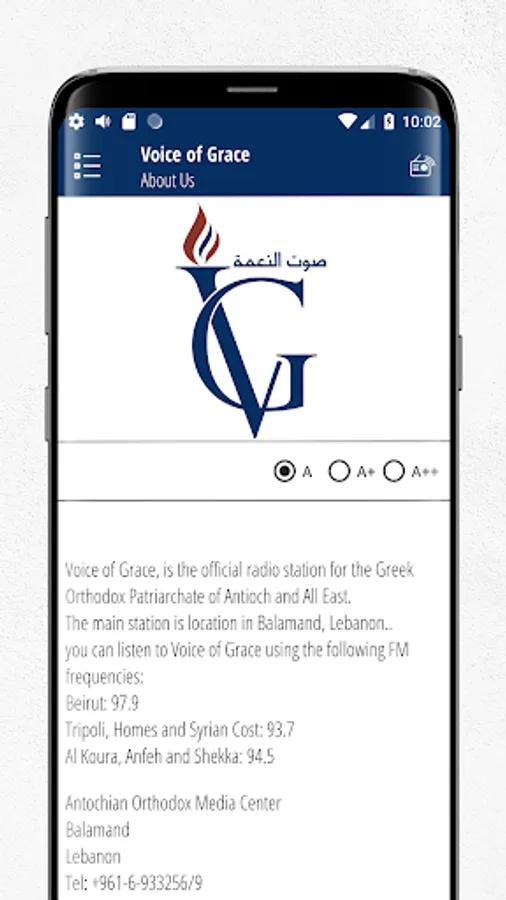 Voice of Grace, is the official radio station for the Greek Orthodox Patriarchate of Antioch and All East.