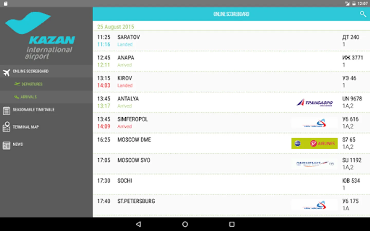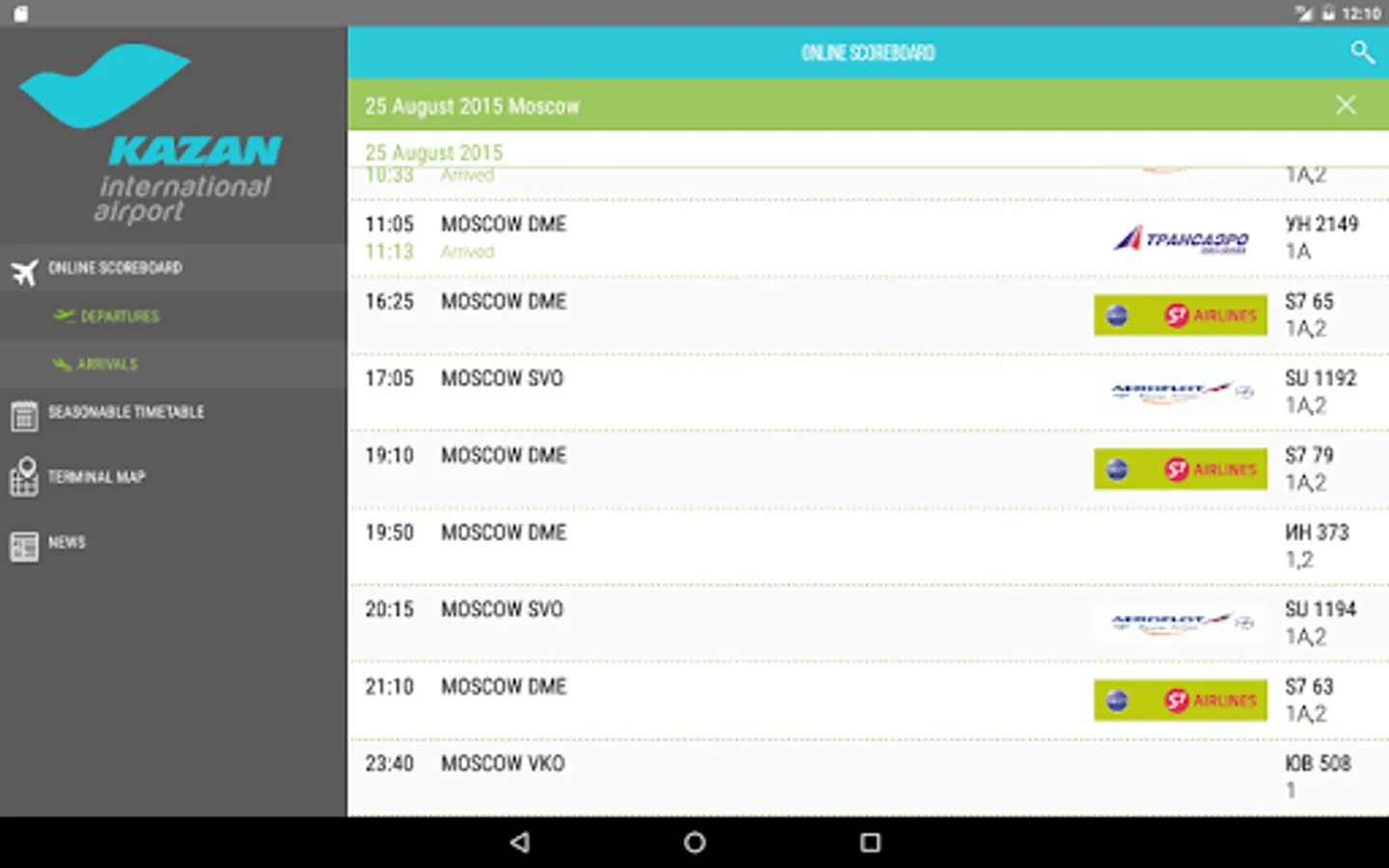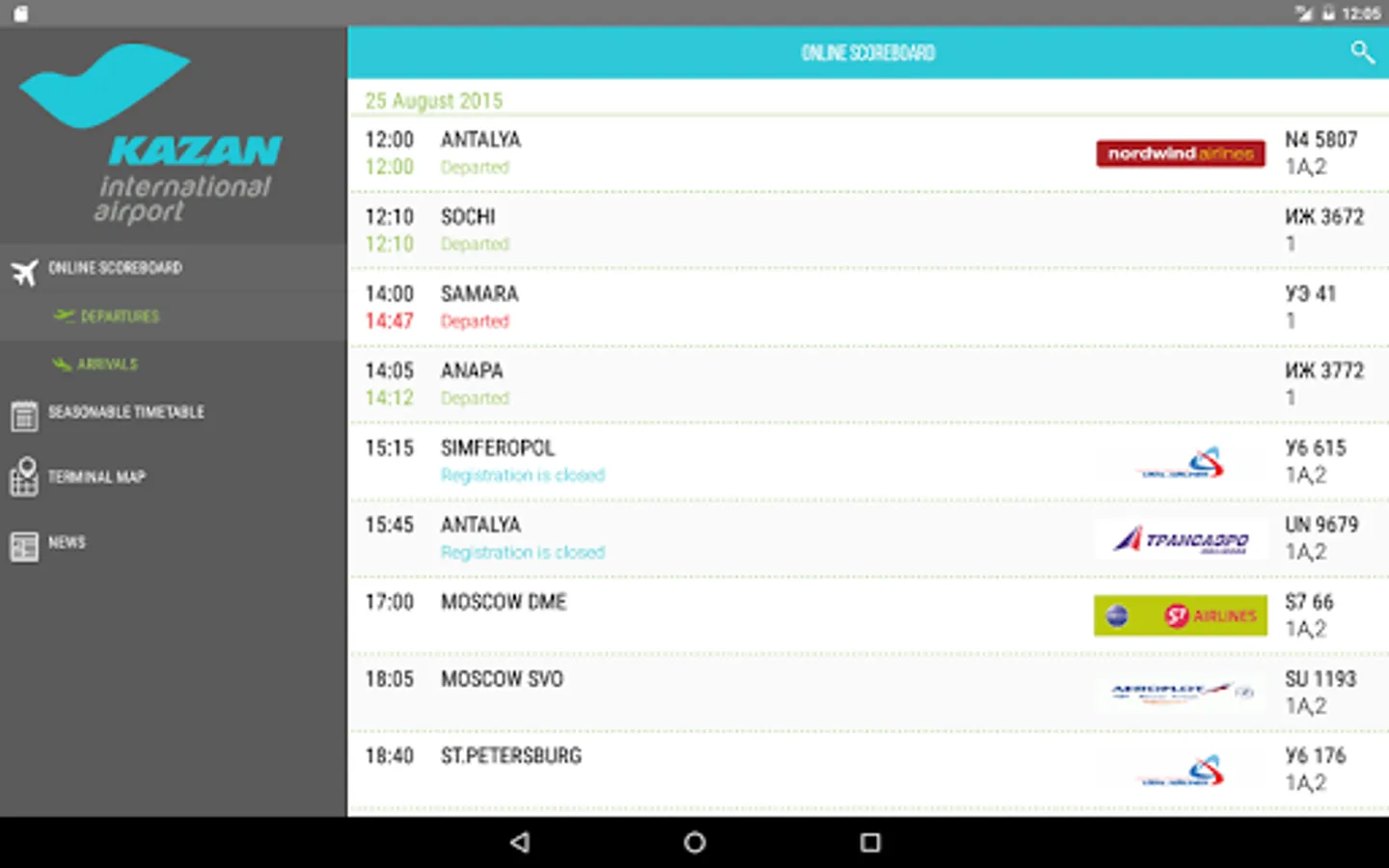 - Seasonal flight schedule for Kazan International Airport.