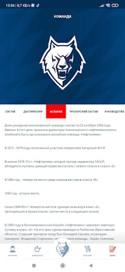 The "Neftekhimik" application was created for all fans of Nizhnekamsk hockey. Here everyone can compete with other participants, earning points (“pucks”) for their activities during the season and spending them in the mobile application store. At the end of the season, the leaders of the rating win the main prizes.