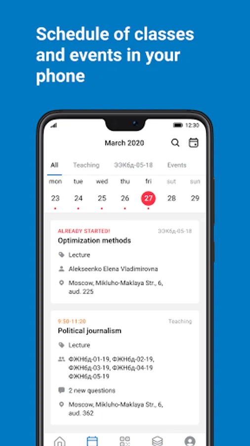 You can get information about schedule, different events at university and latest news easily. There is an electronic pass to the university in your smartphone.