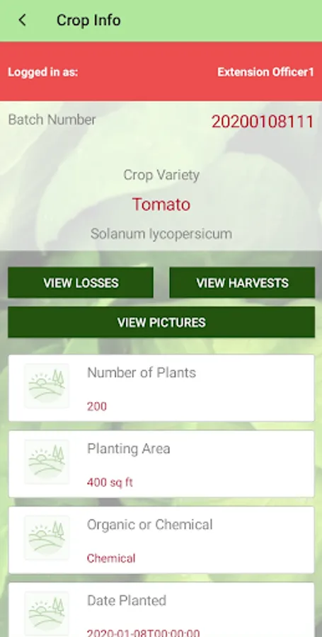Manage farms, crops, harvests, losses and pictures. For Extension Officers at the Ministry of Agriculture Saint Lucia.