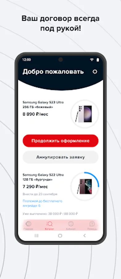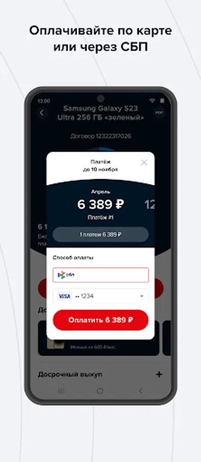 Serve the contract online in the personal account of the mobile application. Make monthly payments from any bank cards and save your card details for faster payments!