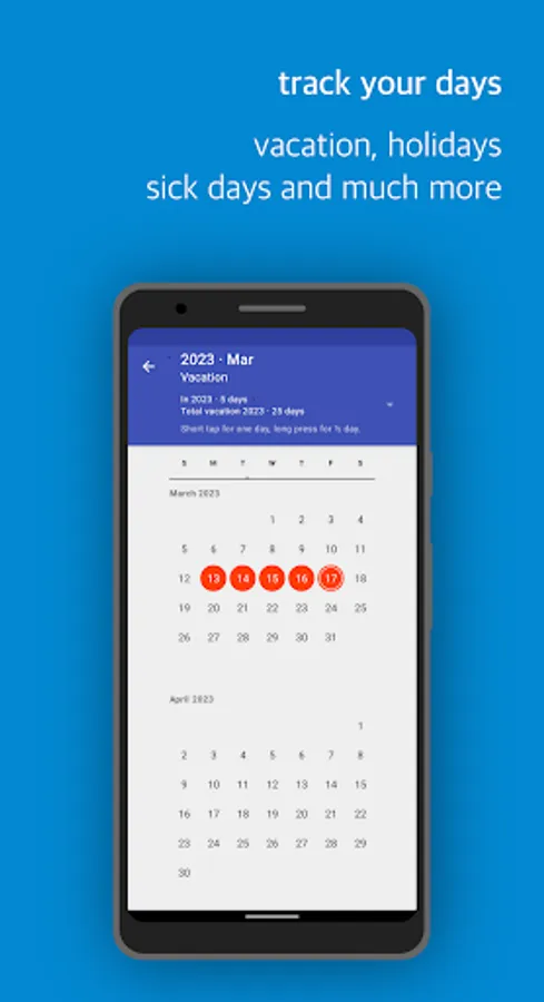 Keep an overview of your project times, overtime, holidays, sick or home-office days.