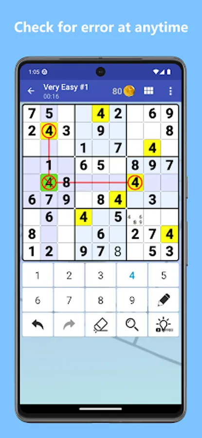 With our hint system, aka the sudoku solver, will teach you all the skills you need to solve the sudoku puzzles step by step, and the instructions are very easy to understand, also with helpful animations and colorful visual effects. The hint system will not only tell you the answer but also help you to understand why the answer is, whether you're completely sudoku kids, or the way to sudoku master.