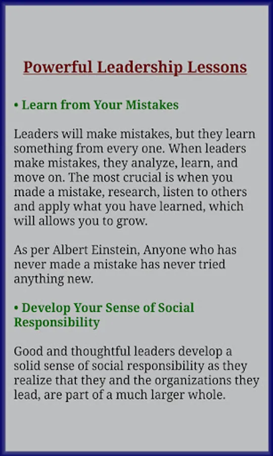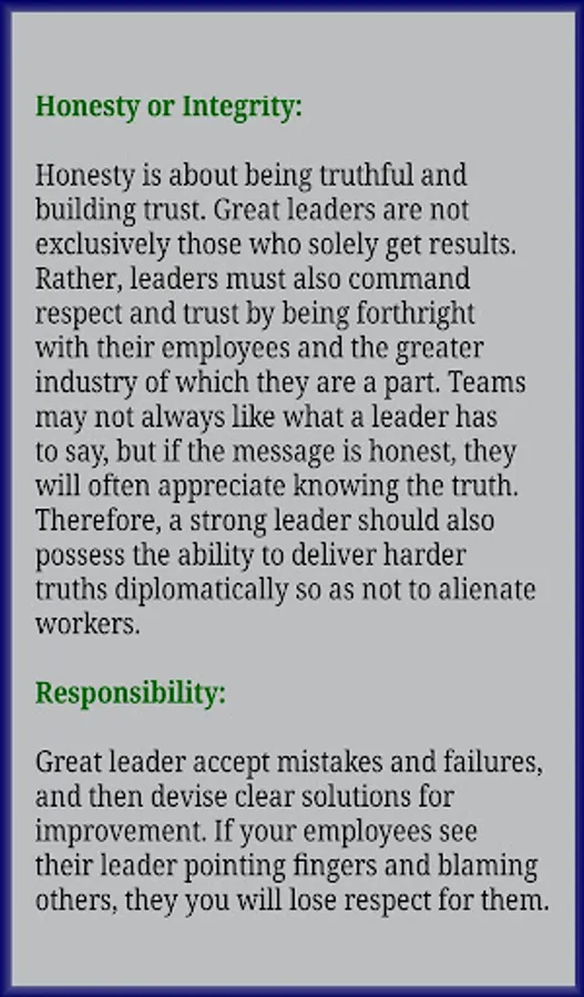 A good leader needs to be able to clearly communicate organizational goals, whether they are short-term goals or long-term ones. They also need to be able to motivate, delegate and so much more. When it comes to being a good leader, it's not as easy as you might think. A lot of factors go into a person with great leadership skills. Some come naturally, and some are learned. But everyone has the potential to be a leader. Irrespective of how you define a leader, he or she can prove to be a difference maker between success and failure. A good leader has a futuristic vision and knows how to turn his ideas into real-world success stories. In this application, we take an in-depth look at some of the important leadership qualities, style as well as important skills that separate good leaders from a bad one.
