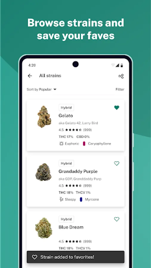 - Browse strains by desired effects, aromas, flavors, recommended lists, and availability at nearby dispensaries or retail stores.